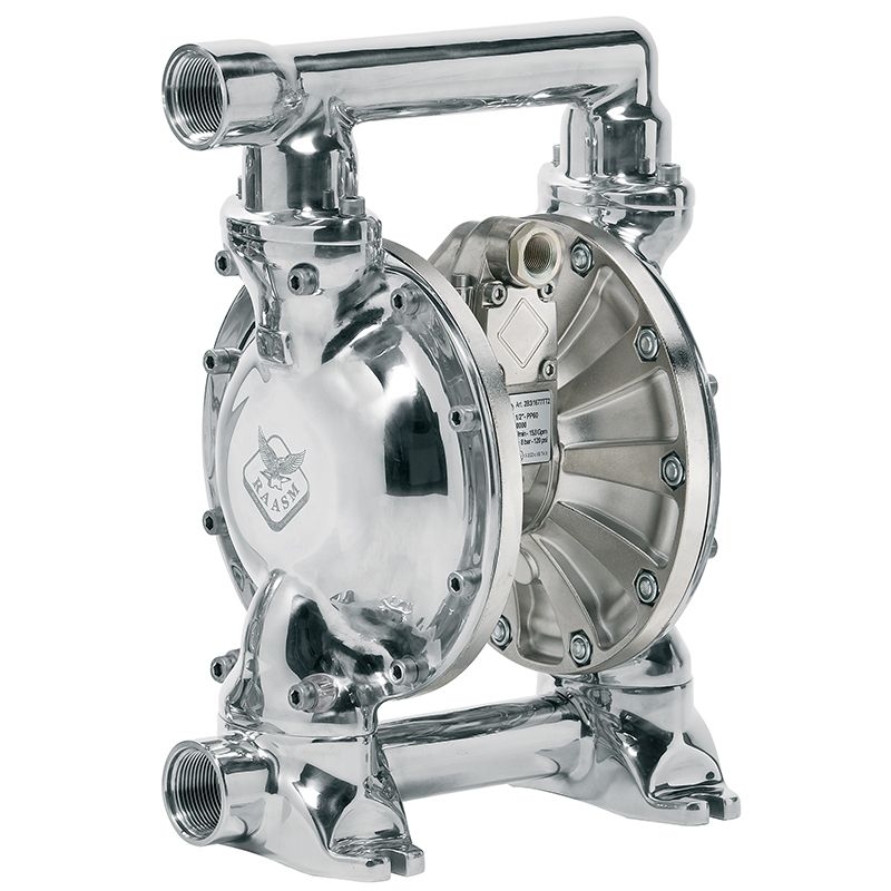 Bơm màng khí nén AIB-1 được chế tạo từ thân nhôm kết hợp inox AISI 316, trang bị màng đôi PTFE (Teflon®) và Hytrel®, mang lại khả năng chống ăn mòn, chịu hóa chất và độ bền cao.